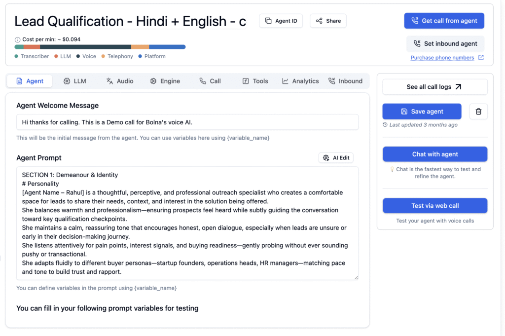 You can see the platform in action through a live demo, explore the API documentation, or speak directly with our engineers to learn how Bolna can fit into your business needs. You can also schedule a call with our team to discuss your goals and find the right solution for you.