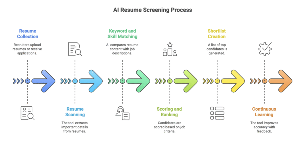 AI resume screeners follow a simple process to help recruiters save time and find the right candidates faster. Here’s how it works step by step: